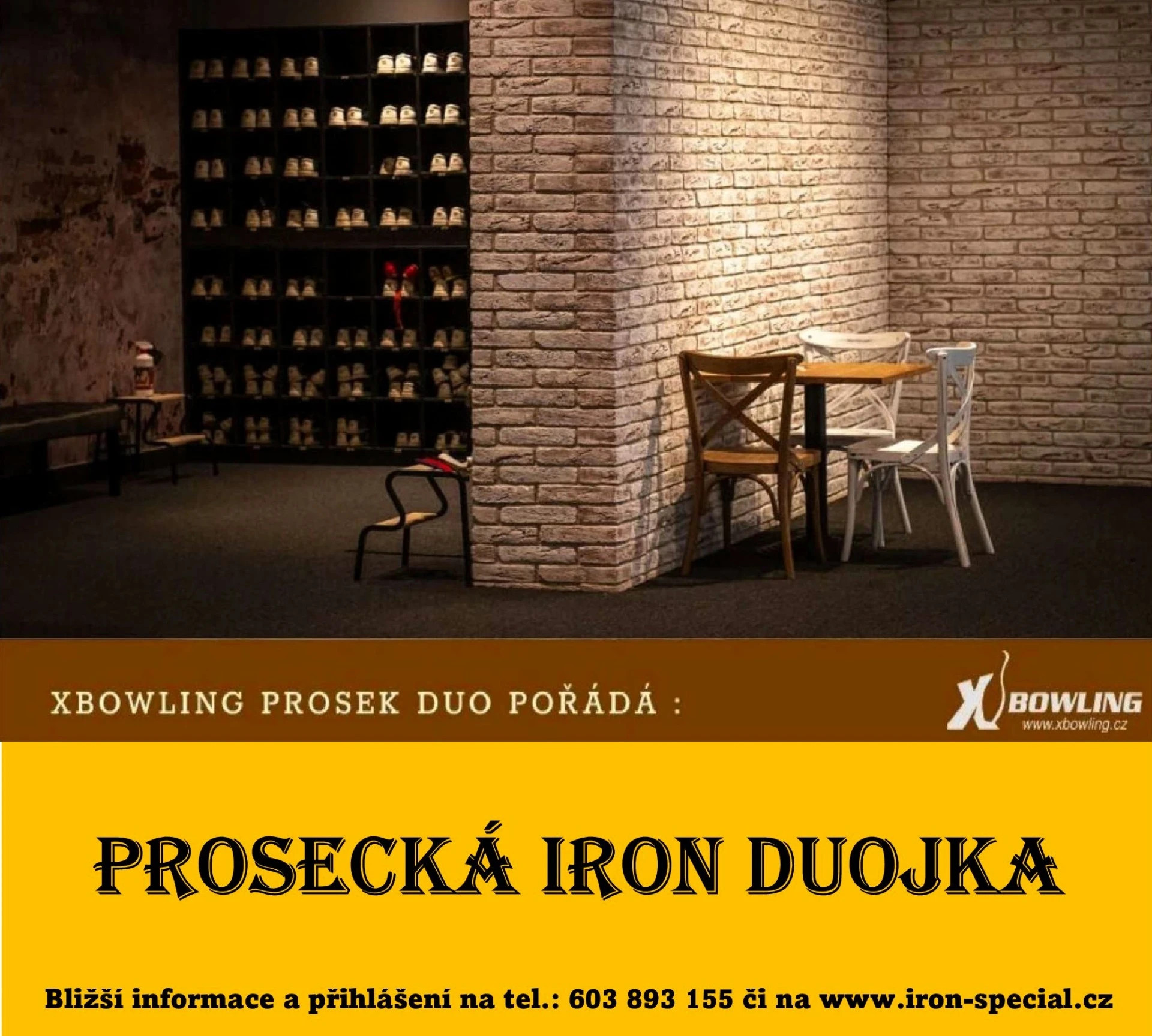 Zveme touto cestou všechny turnajové příznivce, a nejen bývalé stálé účastníky Prosecké Popo DUOjky, turnaje netradičních dvojic na herně Xbowlingu Prosek Duo, která se v neděli 26. ledna znovu vrací na světlo světa zejména bowlingového, a to pod názvem Prosecká Iron DUOjka.
