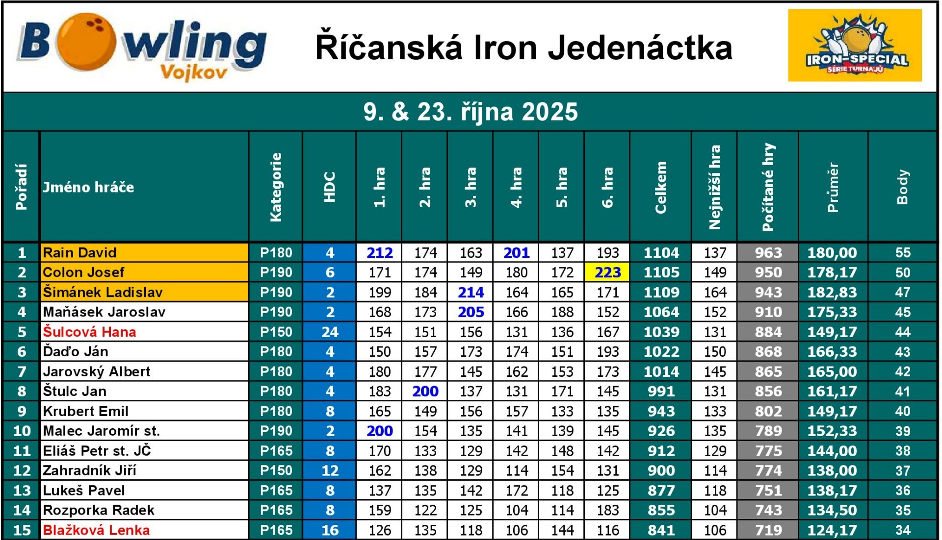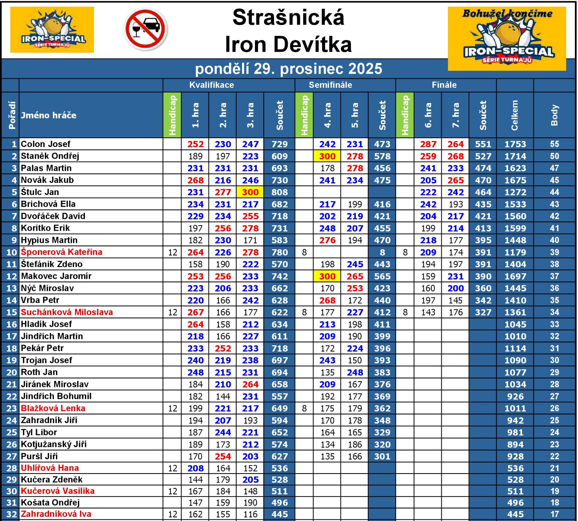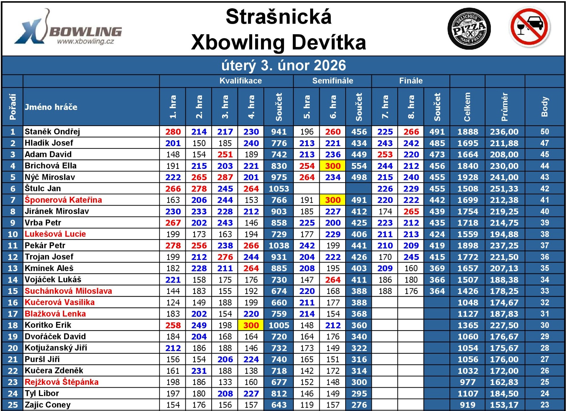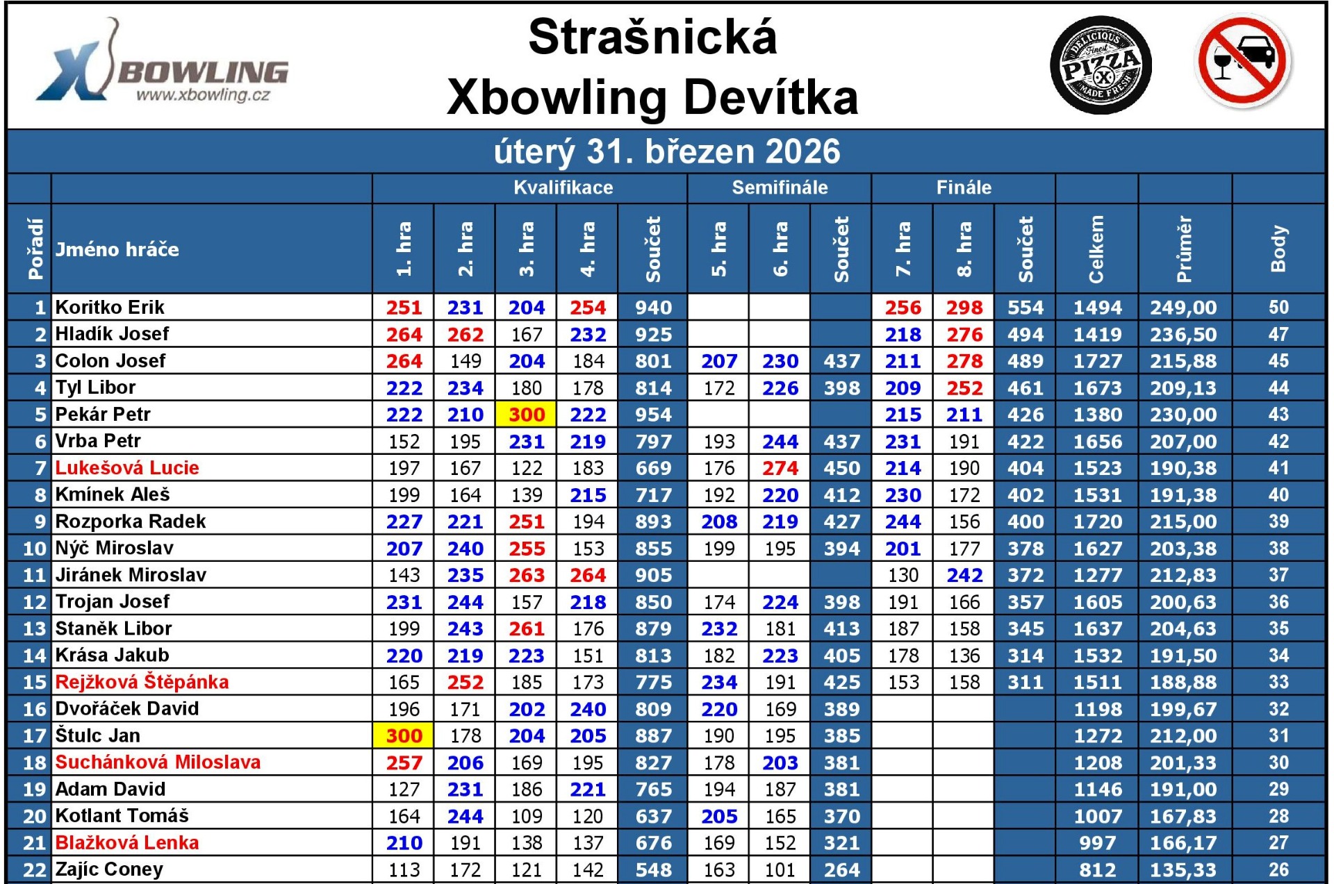 Zde budou zveřejněny veškeré probíhající turnaje online, tedy výsledky po kvalifikaci i semifinále, jakož konečné téměř v reálném čase
